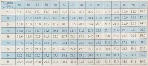 露點溫度表: